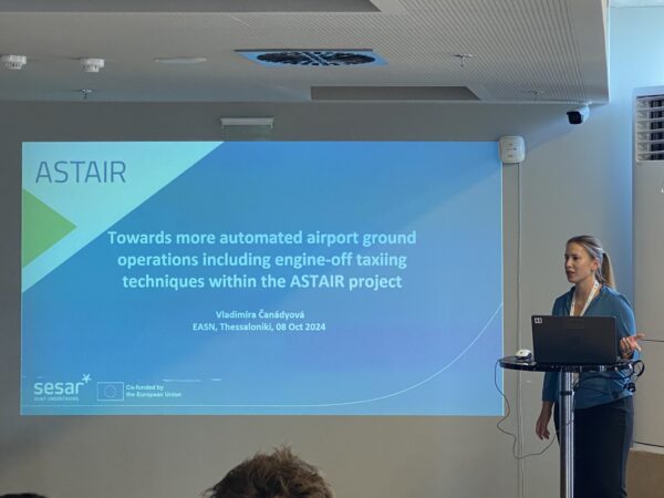 At the 14th EASN International Conference in Thessaloniki, the ASTAIR project presented its approach to automating airport ground operations, including engine-off taxiing techniques. Vladimíra Čanádyová, Lead consultant at Deep Blue and representing ASTAIR, shared the project’s vision for seamless human-AI collaboration to manage both engine-off and conventional taxiing operations across airport surfaces.