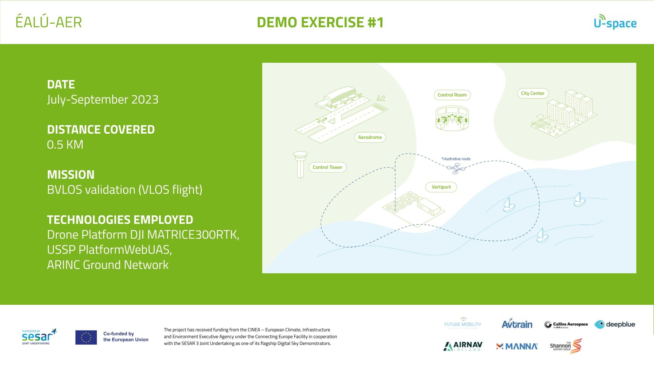 EALU-AER aims at demonstrating U-Space architecture operations and the integration with ATM, leveraging world-class drone traffic management technology solutions. The project will establish Ireland’s first Digital Sky Demonstrator, located at Future Mobility Campus vertiport site, in Shannon, Ireland. The 3-year project is co-funded by the European Union under the Connecting Europe Facility programme, managed by CINEA, and supported by the SESAR 3 Joint Undertaking.