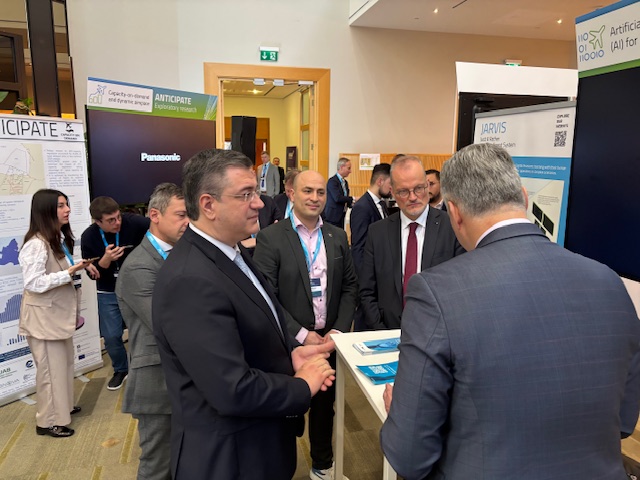 A key highlight of the conference was the presentation of the JARVIS project to Apostolos Tzitzikostas, European Commissioner for Sustainable Transport and Tourism. In the presence of Andreas Boschen, SESAR JU Executive Director, our project coordinator Stefano Riverso from Collins Aerospace and Nikolaos Iosif from Athens International Airport, representing Solution 3 – Airport Digital Assistant, had the pleasure of presenting JARVIS and its concrete contribution to the Digital European Sky through the use of artificial intelligence.