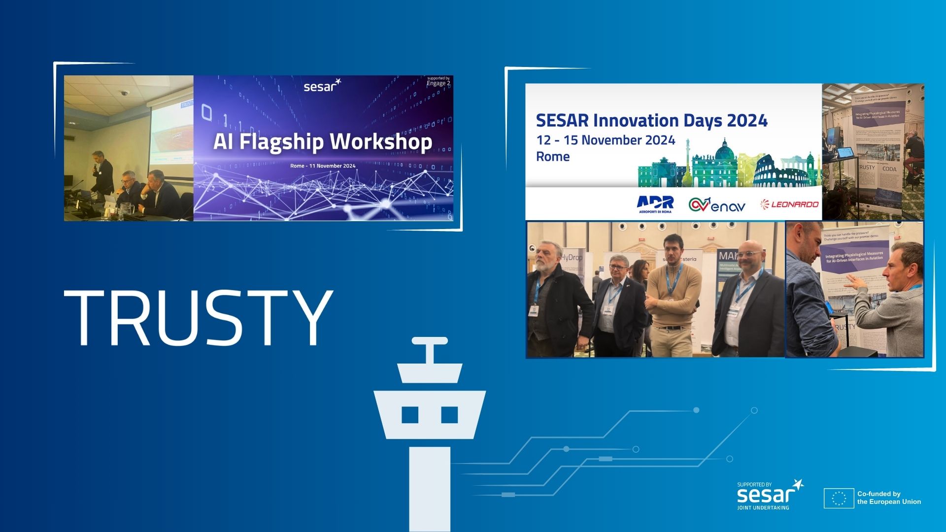 In mid-November 2024, Rome became the stage for groundbreaking discussions in air traffic management (ATM) and artificial intelligence (AI). TRUSTY was at the heart of this week of innovation, showcasing cutting-edge solutions and fostering key collaborations at the SESAR AI Flagship Workshop and SESAR Innovation Days.